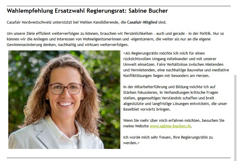 Casafair Nordwestschweiz empfiehlt mich für die Ersatzwahl in den Regierungsrat!